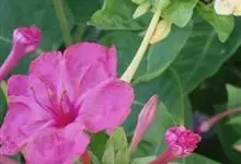 即紫茉莉,英文名:Four-o'clock,Marvel of Peru,为紫茉莉科、紫茉莉属多年生草本植物,一年生栽培。株高50~80cm。根粗壮,茎多分枝而散生。叶对生,卵形或心脏形。花数朵簇生…全部>>