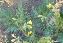 黄花刺茄是茄科,茄属一年生草本植物。直根系,主根发达,侧根较少,多须根。茎直立,基部稍木质化,株型类似灌木。高可达70厘米。叶互生,叶柄长0.5-5厘米,密被刺及星状毛;叶片卵形或椭圆形,…全部>>