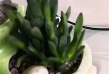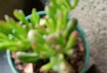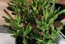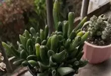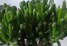 筒叶花月,是景天科青锁龙属的多年生草本植物。植株多分株,灌木状,茎较粗壮,圆柱形,表皮灰褐色;叶片肉质,互生,呈圆筒状,簇生于茎或分枝顶端,叶端呈斜截形,截面为椭圆形;花呈星状,淡白色;花期秋季。…全部>>