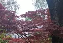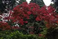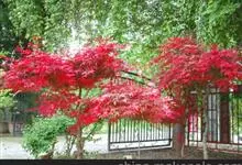 红枫,园艺种,槭树科槭属落叶小乔木,高5~8 m;树冠伞形,枝条开张,细弱。单叶对生,近圆形,薄纸质,掌状7~9深裂,裂深常为全叶片的1/2~1/3,基部心形,裂片卵状长椭圆形至披针形,先端尖,…全部>>