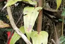 薯蓣是缠绕草质藤本。块茎为长圆柱形,垂直生长,长可达1米多,断面干时白色。茎通常带紫红色,右旋,无毛。单叶,在茎下部的互生,顶端渐尖,基部深心形、宽心形或近截形,边缘常3浅裂至3深裂。叶腋内常有珠芽。…全部>>