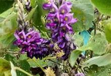 翡翠葛是豆科翡翠葛属植物,多年生常绿大型藤本,茎木质,直径可达30厘米,长可达21.3米。三出复叶,革质光亮,小叶长椭圆形,长7.6-12.7厘米,中间小叶最长。花两性,春季至初夏开花,蓝绿色,…全部>>