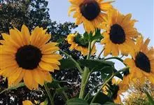 向日葵:是桔梗目、菊科、向日葵属的植物。因花序随太阳转动而得名。是一年生高大草本植物。茎粗壮,高1-3米,不分枝或有时上部分枝,被白色粗硬毛。叶互生,卵状心形或卵形,顶端急尖或渐尖,基生3出脉,…全部>>