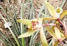 建兰 Sw.):地生植物;假鳞茎卵球形,包藏于叶基之内。叶2-6枚,带形,有光泽,长30-60厘米,宽1-2.5厘米。花葶从假鳞茎基部发出,直立,一般短于叶;总状花序具3-9朵花;花常有香气,…全部>>