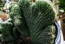 麒麟掌,是大戟科大戟属多年生植物。为金刚纂的带化变异变种。麒麟掌的株乳汁丰富;它的茎圆柱状,上部多分枝,绿色;叶互生,稀少,常生于嫩枝顶端脊上,倒卵形、倒卵状长圆形或匙形,顶端钝圆,具小凸尖,全缘,…全部>>