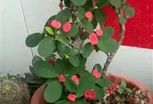 铁海棠为大戟科大戟属蔓生灌木植物;茎多分枝,具纵棱,呈旋转状;叶互生,通常集中于嫩枝上;每个花序基部边缘具微小的红色尖头;苞叶先端圆且具小尖头,无柄,上面鲜红色,下面淡红色;苞片丝状;子房光滑无毛,…全部>>