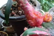 绯牡丹是仙人掌科裸萼球属的生肉质植物,牡丹玉的斑锦变异品种;花朵顶生,漏斗状,淡红色。叶退化,茎扁球形,鲜红色,棱有横脊,刺座着生淡粉色周刺,无中刺;花期:春末夏初。绯牡丹产地南美洲,…全部>>