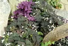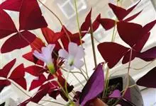 紫叶酢浆草是酢浆草科酢浆草属的多年生草本植物,丛生,叶基生,具有又长又细的叶柄;叶片由三枚倒心形的小叶组合而成,颜色为艳丽的紫红色,没有明显的茎;开粉红带浅白色的伞形小花,有堇色、三角叶等品种,…全部>>