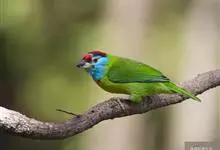 蓝喉拟啄木鸟,是须鴷科、拟啄木鸟属的鸟类。蓝喉拟啄木鸟为小型鸟类,体长20-23厘米。前额至头顶鲜红色,其上有一宽阔的黑色横带,将此红色分为前后二块;头侧、颏、喉蓝色,下喉两侧各具一红色点斑。…全部>>