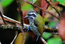 斑姬啄木鸟是鴷形目啄木鸟科姬啄木鸟属鸟类,又叫姬啄木鸟、小啄木鸟。体长9-10厘米。嘴尖而略粗壮,灰黑色;额棕色,向颈后逐渐过渡至橄榄绿色;眉纹白色,过眼纹黑褐色,其下有一白纹,…全部>>
