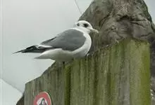 灰背鸥大型水鸟,体长62~69厘米。嘴直,黄色,下嘴先端有红色斑。脚粉红色,头、颈和下体白色,背、肩和翅黑灰色,腰,尾上覆羽和尾白色。冬季头和上胸有褐色纵纹,特别是眼周和后枕较密。飞翔时翅前后缘白色…全部>>