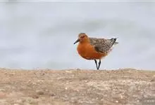 红腹滨鹬,是鹬科、滨鹬属的小型涉禽,体长23-25厘米,嘴较短而直、黑色,脚亦甚短、绿色。体较粗胖。夏季上体灰褐色具黑色中央纹,背具棕栗色和白色斑纹和羽缘,头侧和整个下体栗红色。冬季棕红色消失,…全部>>