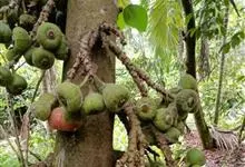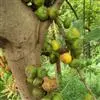 大果榕是桑科榕属的小乔木,株高可达10米;幼枝被柔毛;叶互生,宽卵状心形或近圆形;雄花无梗、匙形、花丝长,雌花生于雌株榕果内,子房白色;榕果簇生于树干基部或老茎短枝上、扁球形或陀螺形,…全部>>
