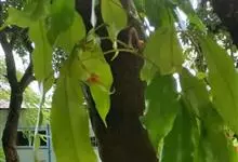 大果榕是桑科榕属的小乔木,株高可达10米;幼枝被柔毛;叶互生,宽卵状心形或近圆形;雄花无梗、匙形、花丝长,雌花生于雌株榕果内,子房白色;榕果簇生于树干基部或老茎短枝上、扁球形或陀螺形,…全部>>