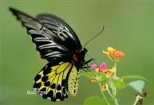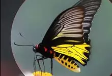 金裳凤蝶是凤蝶科、裳凤蝶属的动物。金裳凤蝶身体呈黑色,头、颈和胸侧有红毛,腹部有黑黄两色相间条纹,雄蝶前翅黑色,具黑天鹅绒光泽,各脉两侧灰白色,后翅金黄色,各室外缘有等腰三角形黑斑1枚,斑内侧有晕,…全部>>