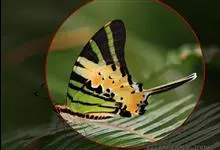 青带凤蝶Graphium sarpedon ,又名青凤蝶,是最普遍的中型凤蝶,飞行速度很快。青带凤蝶的翅膀中央有许多浅蓝色的斑点,很整齐地排列成一条直线。这些斑点由上而下逐渐变大,就像一条青色的带子。全部>>
