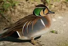 绿翅鸭是小型鸭类,体长37厘米,体重约0.5千克。嘴脚均为黑色。雄鸟头至颈部深栗色,头顶两侧从眼开始有一条宽阔的绿色带斑一直延伸至颈侧,尾下覆羽黑色,两侧各有一黄色三角形斑,在水中游泳时,极为醒目。…全部>>