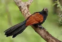 褐翅鸦鹃,是鹃形目鸦鹃科鸦鹃属的鸟类。褐翅鸦鹃的身体为黑色;头颈和胸带蓝紫色金属光泽并具黑亮的羽干纹,下胸至腹部泛金属绿光泽;两翼和肩部为棕栗色,外侧飞羽具暗色羽端,尾羽闪铜绿色光泽;虹膜赤红色,…全部>>