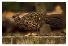红腹角雉属于鸡形目雉科,雄鸟体羽及两翅主要为深栗红色,满布具黑缘的灰色眼状斑,下体灰斑大而色浅。雌鸟上体灰褐色,下体淡黄色,杂以黑、棕、白斑。全部>>