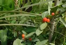 冬珊瑚,现名珊瑚豆 Bitter)。直立小灌木,多分枝成丛生状,作1-2年生栽培。株高30-60厘米。叶互生,狭长圆形至倒披针形。夏秋开花,花小,白色,腋生。浆果,深橙红色,圆球形,直径1-1.5厘…全部>>