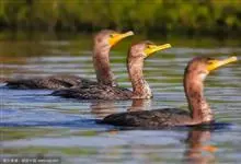 普通鸬鹚是属于鲣鸟目鸬鹚科鸬鹚属鸟类,又名水老鸦、鱼鹰、乌鬼、黑鱼郎等。体长720—900毫米,雌雄同型。通体黑色,有绿褐色金属光泽;喙厚重,喙基和喉囊橙黄色,脸颊及喉白色;夏羽颈及头饰具白色丝状羽,…全部>>