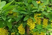 日本小檗是小檗科小檗属植物,落叶灌木,一般高约1米,枝条开展,幼枝淡红带绿色,老枝暗红色;茎刺单一,叶薄纸质,倒卵形、匙形或菱状卵形,花朵组成具总梗的伞形花序,…全部>>