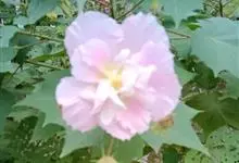 木芙蓉,锦葵科木槿属落叶灌木或小乔木。小枝上有细绒毛;叶片为卵状心形,托叶为披针形,常早落;花单生,花萼为钟形,花冠初为白色或淡红色,后逐渐变为深红色;果实为扁球形,有淡黄色的毛附着。花期8到10月。…全部>>