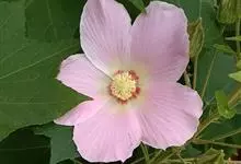 海滨木槿是锦葵科木槿属植物,落叶小乔木,株高3-5米,胸径20厘米,扁球形树冠,枝叶繁盛。厚纸质单叶互生,扁圆形、倒卵形或宽倒卵形,先端钝近平,具短突尖,基部圆形或浅心形,叶缘中上部具细圆齿,…全部>>