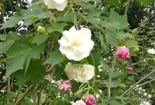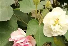木芙蓉,锦葵科木槿属落叶灌木或小乔木。小枝上有细绒毛;叶片为卵状心形,托叶为披针形,常早落;花单生,花萼为钟形,花冠初为白色或淡红色,后逐渐变为深红色;果实为扁球形,有淡黄色的毛附着。花期8到10月。…全部>>