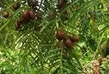 三尖杉是红豆杉科三尖杉属乔木。株高达20米;树皮褐色或红褐色,裂成片状脱落,树冠广圆形;枝条较细长,叶排成两列,披针状线形,基部楔形或宽楔形;总花梗粗,种子椭圆状卵形或近圆形,假种皮成熟时紫或红紫色。…全部>>