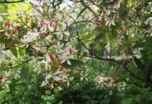 山荆子 Borkh.):为落叶乔木,树高可达4-5米,最高可达10米以上。灰褐色,光滑,不易开裂。新梢黄褐色,无毛。嫩梢绿色微带红褐。叶片椭圆形,先端渐尖,基部楔形,叶缘锯齿细锐。伞形总状花序。花白色,…全部>>