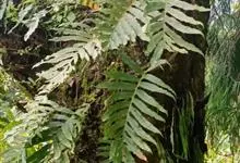 苏铁蕨是乌毛蕨科苏铁蕨属植物。根状茎粗壮,木质,直立圆柱状,直径达15厘米或更粗,高达1.5米或过之;鳞片红棕色或深棕色,有光泽,线状狭长披针形。叶簇生,叶柄禾秆色至深禾秆色,光滑或下部略粗糙,…全部>>