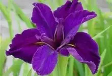 玉蝉花是鸢尾科鸢尾属的多年生草本植物,根状茎粗壮,斜伸;叶线形,中脉明显,长可达80厘米,宽约1厘米;花深紫色,直径约10厘米,花被管漏斗形,外花被裂片倒卵形,爪部细长,中央下陷呈沟状,…全部>>