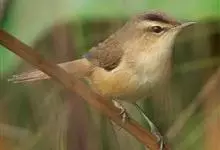 东方大苇莺是莺科苇莺属的一种动物,体长18-19厘米,体重22-29克。体型略大的褐色苇莺。具显著的皮黄色眉纹。上体呈橄榄褐色。下体乳黄色。第1枚初级飞羽长度不超过初级覆羽。虹膜褐色;上嘴褐色,…全部>>
