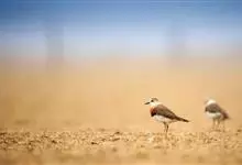 东方鸻:属小型涉禽。体重80-95克,体长220-255毫米。在夏季,前额、眉纹和头的两侧白色,头顶、背褐色或沙褐色。颏、喉白色,前颈棕色,胸棕栗色,其下有一黑色胸带紧靠其后,其余下体白色。嘴细长,…全部>>