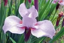 Iris sanguinea :多年生草本。根状茎粗壮,斜伸,须根绳索状,灰白色,有皱缩的横纹。叶条形,中脉不明显。花茎光滑,实心,具1-2枚茎生叶;苞片3枚,膜质,绿色,披针形,内包含有2朵花;花…全部>>