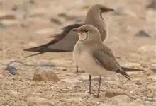 燕鸻pratincole,亦作swallow plover。燕鸻科燕鸻亚科6~7种旧大陆海滨鸟类。体长约20公分,体褐色,腰白色;叉尾,翅长而尖。晨昏飞行在河流、湖泊上空捕食昆虫。…全部>>