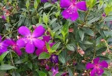 野牡丹:灌木,高0.5-1.5米,分枝多;茎钝四棱形或近圆柱形,毛扁平边缘流苏状。叶片坚纸质,卵形或广卵形,全缘,7基出脉,两面被糙伏毛及短柔毛。伞房花序生于分枝顶端,近头状,…全部>>