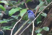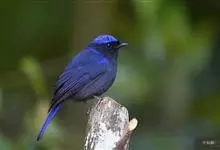 棕腹大仙鹟:体重24-28克,体长15-17厘米,是一种小型的色彩亮丽的鹟。雄鸟上体深蓝,下体棕色,脸黑,额、颈侧小块斑、翼角及腰部亮丽闪辉蓝色。与棕腹仙鹟易混淆,区别在色彩较暗。雌鸟灰褐,…全部>>