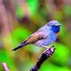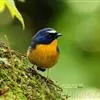 棕胸蓝姬鹟:属小型鸣禽,体长10-13厘米,体重6-10克,是一种体型很小的灰蓝及棕色鹟,雌雄羽色不同,雄鸟羽色艳丽,雌鸟羽色暗淡。雄鸟上体深蓝色,胸橙黄色,下腹灰白色。亚成鸟具褐色斑驳。…全部>>
