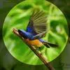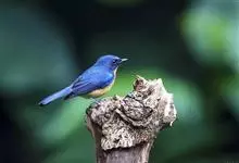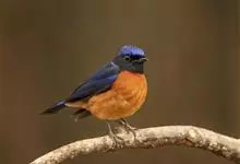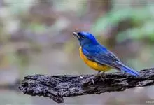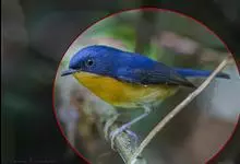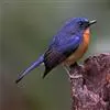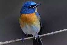 棕腹大仙鹟:体重24-28克,体长15-17厘米,是一种小型的色彩亮丽的鹟。雄鸟上体深蓝,下体棕色,脸黑,额、颈侧小块斑、翼角及腰部亮丽闪辉蓝色。与棕腹仙鹟易混淆,区别在色彩较暗。雌鸟灰褐,…全部>>