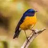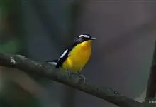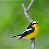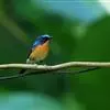 山蓝仙鹟:小型鸟类,体长13-15厘米。雄鸟额基和眼先黑色,颏橙棕色,仅颏尖为蓝黑色,喉、胸、上腹和两胁亦为橙棕色,下体白色范围较小,仅局限于下腹和尾下覆羽。雌鸟上体少黄色,颏、喉、胸概为锈红色,…全部>>