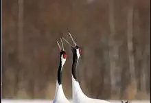 丹顶鹤:是鹤科、鹤属的一种大型涉禽,体长120-160厘米。颈、脚较长,通体大多白色,头顶鲜红色,喉和颈黑色,耳至头枕白色,脚黑色,站立时颈、尾部飞羽和脚黑色,头顶红色,…全部>>