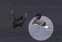 白枕鹤体形与丹顶鹤相似,略小于丹顶鹤,而大于白头鹤。上体为石板灰色。尾羽为暗灰色,末端具有宽阔的黑色横斑。取食时主要用喙啄食,或用喙先拨开表层土壤,然后啄食埋藏在下面的种子和根茎,边走边啄食。…全部>>