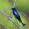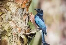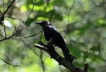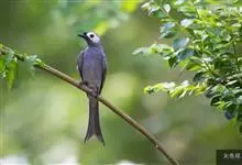发冠卷尾是中型鸟类,体长28-35厘米。通体绒黑色缀蓝绿色金属光泽,额部具发丝状羽冠,外侧尾羽末端向上卷曲。栖息于海拔1500米以下的低山丘陵和山脚沟谷地带,多在常绿阔叶林、次生林或人工松林中活动。…全部>>