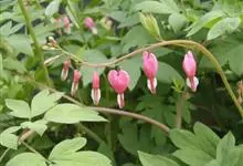 荷包牡丹 Fukuhara),是罂粟科荷包牡丹属的多年生草本植物,株高30-60厘米,具肉质根状茎;茎直立呈圆柱形;叶二回三出全裂,状似牡丹叶;总状花序顶生,基部为心形,花瓣紫红色至粉红色,稀白色,…全部>>
