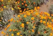 万寿菊是菊科万寿菊属一年生草本植物,别名孔雀菊、缎子花、臭菊花、西番菊、红黄草、小万寿菊、臭芙蓉、孔雀草。万寿菊茎近基部分枝。叶羽状分裂,长5-10厘米,宽4-8厘米,裂片长椭圆形或披针形,具锐齿,…全部>>