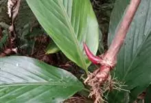 花叶山姜,为姜科,山姜属多年生草本植物,无地上茎;根茎平卧。叶片椭圆形,长圆形或长圆状披针形,长达可达15厘米,叶面绿色,叶背浅绿;两面均无毛,叶舌短,叶鞘红褐色。总状花序自叶鞘间抽出,花对生,花萼…全部>>