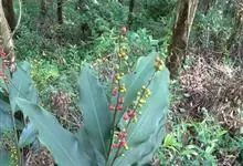 花叶山姜,为姜科,山姜属多年生草本植物,无地上茎;根茎平卧。叶片椭圆形,长圆形或长圆状披针形,长达可达15厘米,叶面绿色,叶背浅绿;两面均无毛,叶舌短,叶鞘红褐色。总状花序自叶鞘间抽出,花对生,花萼…全部>>