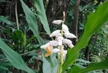 花叶山姜,为姜科,山姜属多年生草本植物,无地上茎;根茎平卧。叶片椭圆形,长圆形或长圆状披针形,长达可达15厘米,叶面绿色,叶背浅绿;两面均无毛,叶舌短,叶鞘红褐色。总状花序自叶鞘间抽出,花对生,花萼…全部>>